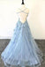 Lace Appliques Sky Blue Prom Dress with Criss Cross Back INP13